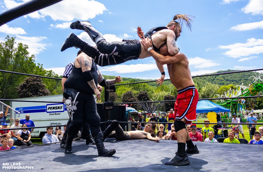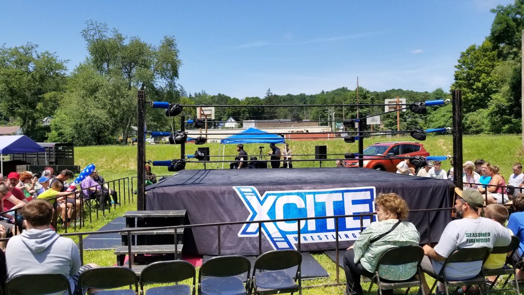 It’s such a weird feeling to have been a fan of pro-wrestling since the 90s as a kid and only now having been to my first wrestling show. As a first show, however, it was a perfect experience. A variety of match-types from crowd-building openers to aerial acrobatics to technical grappling and everything in between along with an entertaining cast of characters on the show left an indelible impression on me as a fan…as did the giant cow that roamed the field as the ring was being torn down. Jonny Moose, Xcite’s owner, would know about that one. It was a wonderful show that was a treat to be in attendance for as part of the Deposit Lumberjack Festival. Whether it’s at the Festival next year or somewhere else down the road, I’d love to see Xcite Wrestling again.