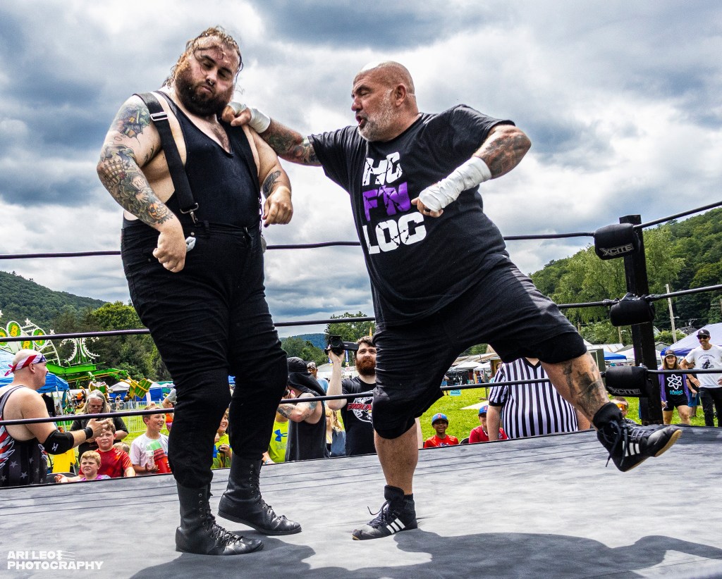 This led eventually to Olson provoking the ire of HC Loc, the head trainer at Xcite Wrestling. HC Loc came out along with a hometown boy in Tyler Wahl, ultimately leading to Olson’s defeat at the hands of HC Loc and a send-off promo by the company and its performers, ensuring the crowd went on to the rest of the Lumberjack Festival happy.